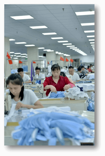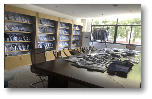Готовая продукция: склад в Синьцзяне с постоянным запасом — 1–2 миллиона детских рубашек и 300–500 тысяч мужских рубашек в год.